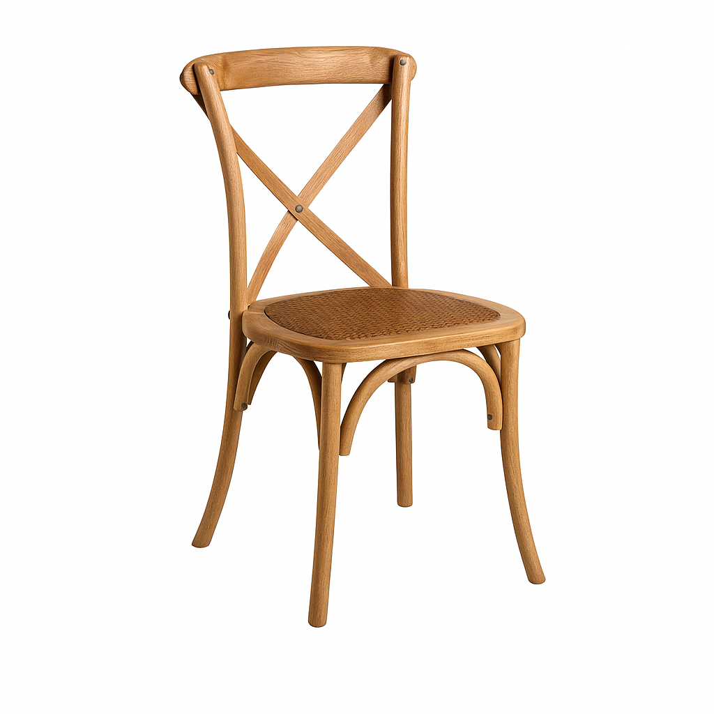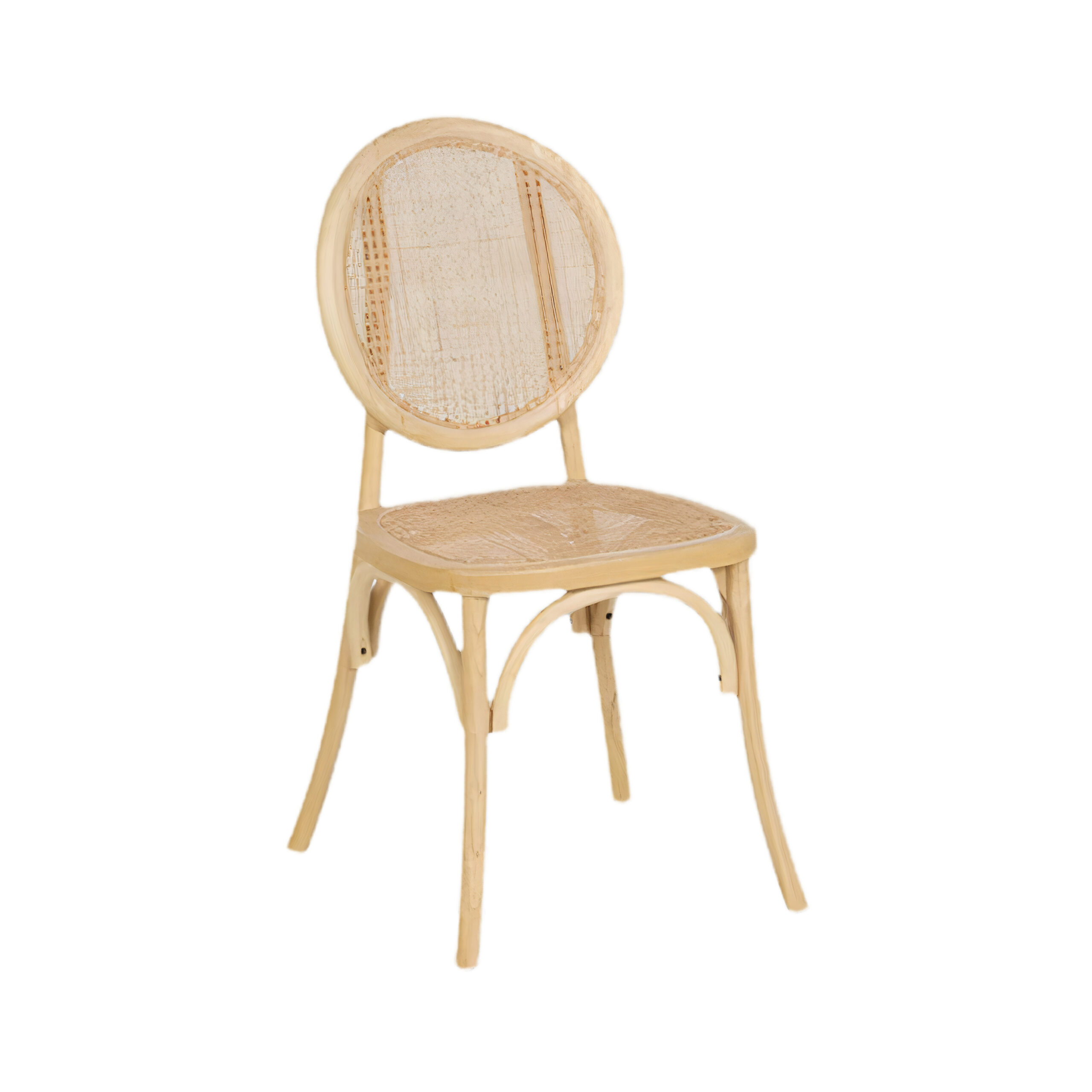 Chaise en bois au style champêtre chic, idéale pour les mariages et réceptions en extérieur. Solide et élégante, elle s’adapte à tous les décors naturels.